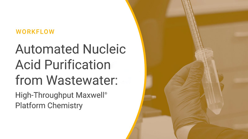 The following Maxwell® nucleic acid purification kits are recommended for extracting viral RNA from wastewater samples. These kits used with Maxwell® Instruments allow automated viral RNA extraction from wastewater at up to 48 samples per run.