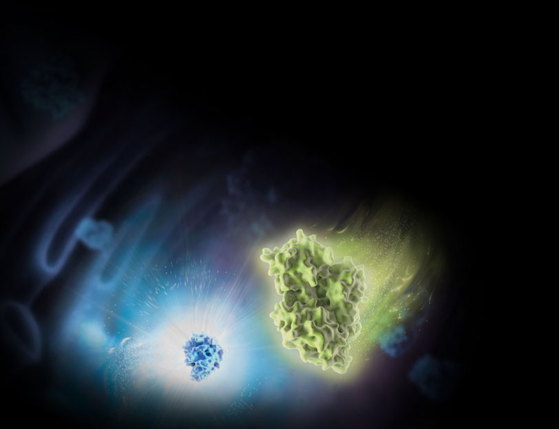 NanoLuc® Luciferase es una pequeña enzima monomérica (19,1 kDa, 171 aminoácidos) basada en la luciferasa del camarón de aguas profundas Oplophorus gracilirostris. Esta enzima diseñada mediante ingeniería genética utiliza un nuevo sustrato, la furimazina, para producir una luminiscencia de alta intensidad y de tipo "glow" en una reacción independiente del ATP. A diferencia de otras formas de luciferasa, la NanoLuc® Luciferase es idónea para aplicaciones con genes reporteros estándar (líticos), basados en secreción y en células vivas (no líticos). El pequeño tamaño del gen (513 pb) y de la proteína codificada es ideal para aplicaciones con virus y fusiones de proteínas.