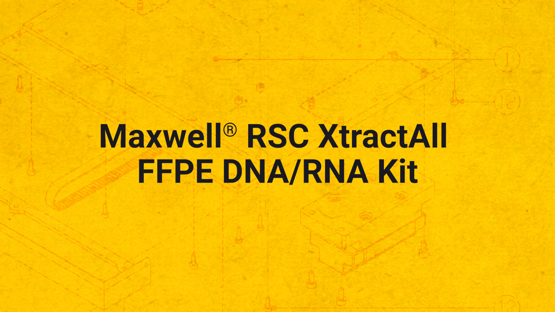 The Maxwell® RSC XtractAll FFPE DNA/RNA Kit, used with the Maxwell® RSC or Maxwell® RSC 48 Instrument, is an innovative solution designed to efficiently purify DNA and RNA from formalin-fixed, paraffin-embedded (FFPE) tissue samples. This kit streamlines nucleic acid extraction with unparalleled flexibility by offering four distinct workflows allowing users the choice to extract: DNA only, RNA only, total nucleic acid in a single eluate, or sequentially extract DNA and RNA into separate eluates—all from the same sample. This versatility ensures that laboratories can maximize the utility of limited FFPE tissue inputs. The Maxwell® RSC XtractAll FFPE DNA/RNA Kit combines minimal hands-on time and easy-to-follow protocols, with the consistency and efficiency of automated extraction. The Maxwell® RSC XtractAll FFPE DNA/RNA Kit produces high-quality nucleic acids that are suitable for advanced downstream analysis assays, such as digital PCR and next-generation sequencing (NGS).